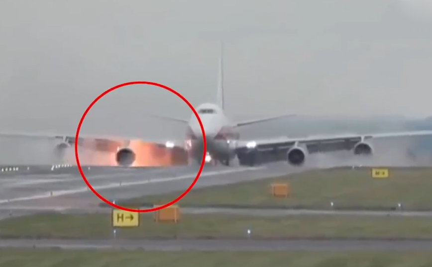 Τρόμος για τους εργαζόμενους και το πλήρωμα αεροπλάνου κατά την προσγείωσή του στο αεροδρόμιο Ιστ Μίντλαντς της Αγγλίας το βράδυ της Πέμπτης 30/9. Από τις φωτογραφίες που κάνουν τον γύρο του διαδικτύου ο ένας κινητήρας φαίνεται να τυλίγεται στις φλόγες μόλις το αεροσκάφος αγγίζει το έδαφος.