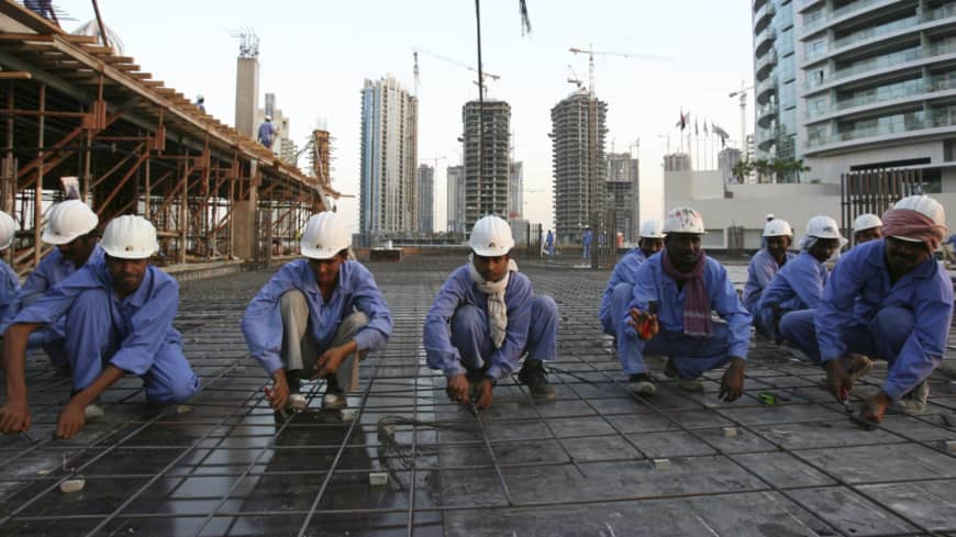 Τα ΗΑΕ και άλλη μια χώρα του Κόλπου, το Κατάρ, που θα φιλοξενήσει το παγκόσμιο κύπελλο ποδοσφαίρου του 2022, επικρίνονται συχνά από υπερασπιστές των ανθρωπίνων δικαιωμάτων για τη μεταχείριση που επιφυλάσσουν σε εκατοντάδες χιλιάδες ξένους εργάτες, στην πλειονότητά τους από τη νότια Ασία, που αναλαμβάνουν να φέρουν σε πέρας την οικοδόμηση τιτάνιων έργων.