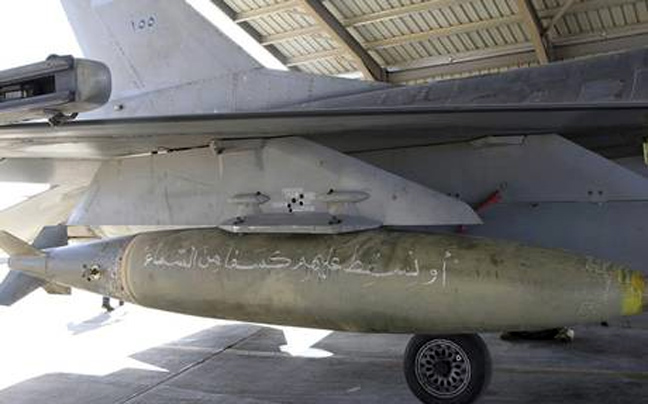 Ο στρατός της χώρας, έδωσε στη δημοσιότητα βίντεο στο οποίο δείχνουν τις επιδρομές που πραγματοποιούν. Σε κάποια από τα καρέ, φαίνονται πιλότοι να γράφουν μηνύματα με κιμωλία στις οβίδες, στις οποίες γράφουν «για σένα, τον εχθρό του ισλάμ».