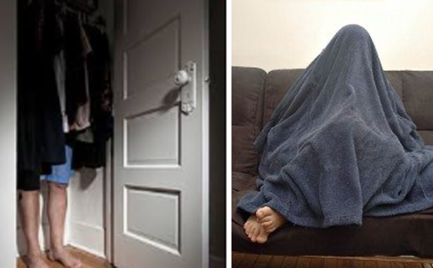 Όμως όχι μόνο τον βρήκαν αλλά τον γελοιοποίησαν κιόλας καθώς τη στιγμή που εντοπίστηκε ήταν κρυμμένος στο έπιπλο με… μια κουβέρτα στο κεφάλι.