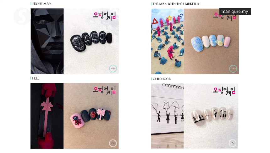 Ένα σαλόνι περιποίησης άκρων στη Μαλαισία φτιάχνει ζωγραφισμένα και πιεσμένα σχέδια νυχιών βασισμένα στην τηλεοπτική σειρά του Netflix, Squid Game. Πρόκειται για μια ακόμη μικρή επιχείρηση που εξαργυρώνει και κάνει χρυσές δουλειές από την αυξανόμενη δημοτικότητα της σειράς της Νότιας Κορέας.