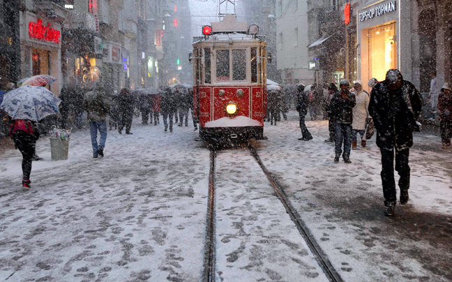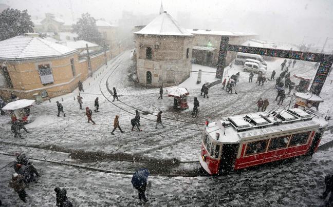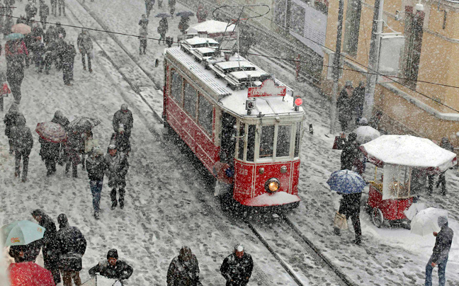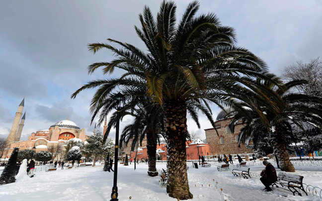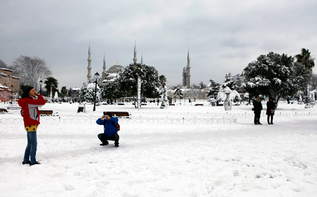 Τα πάντα έχουν καλυφθεί από χιόνι στην Κωνσταντινούπολη, που πλήττεται από σφοδρό κύμα κακοκαιρίας. Και μπορεί οι Τούρκοι να βγήκαν για να κάνουν βόλτες στο χιονισμένο τοπίο, όμως τα προβλήματα στις αερομεταφορές, αλλά και το οδικό δίκτυο είναι μεγάλες.
