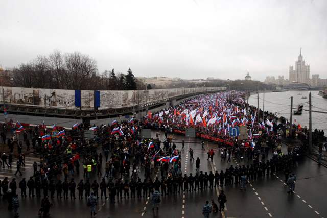 Πολλές δεκάδες χιλιάδες άνθρωποι, 70.000 σύμφωνα με έναν από τους διοργανωτές, συμμετείχαν σήμερα στη Μόσχα σε μία πορεία στη μνήμη του δολοφονηθέντος αντιπολιτευόμενου πολιτικού Μπόρις Νεμτσόφ, μετέδωσαν οι δημοσιογράφοι του Γαλλικού Πρακτορείου από το σημείο.