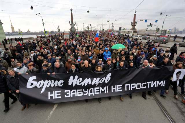 Στην Αγία Πετρούπολη, τη δεύτερη μεγαλύτερη πόλη της χώρας, περισσότεροι από 6000 άνθρωποι, σύμφωνα με την αστυνομία, συγκεντρώθηκαν για να αποτίνουν φόρο τιμής στον Νεμτσόφ.