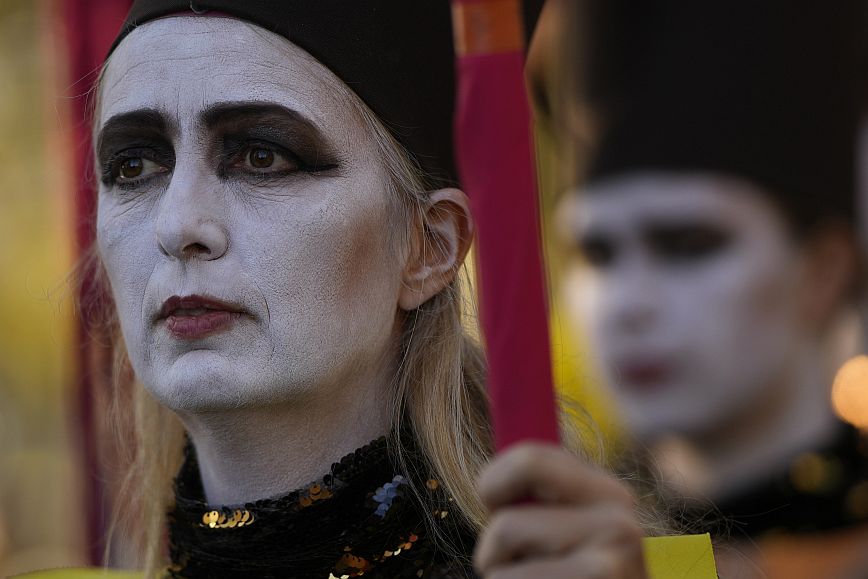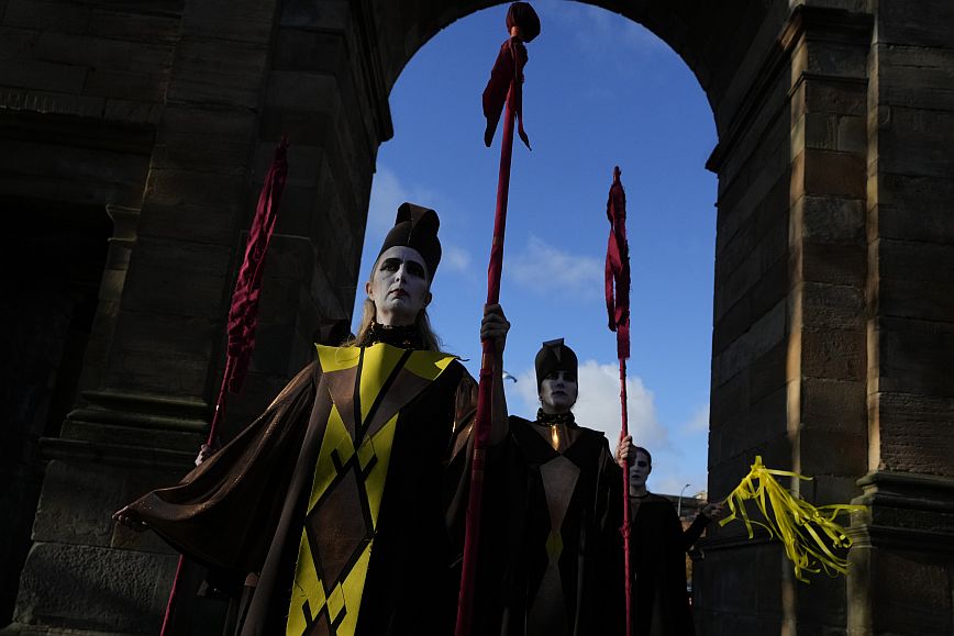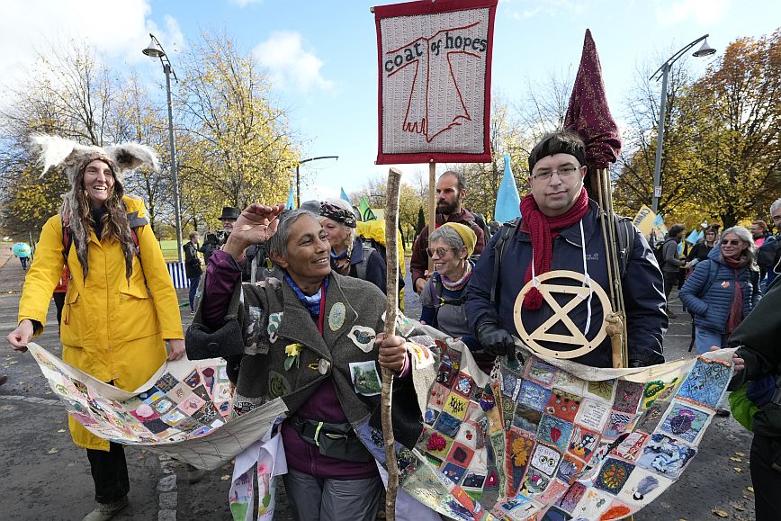 Activists participate in a climate change protest in Glasgow, Scotland ahead of the start of COP26, Saturday, Oct. 30, 2021. The U.N. climate conference COP26 starts Sunday in Glasgow. (AP Photo/Alastair Grant)