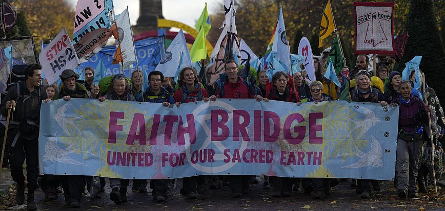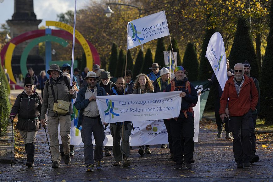 Πολλοί έφτασαν στη Σκωτία αφού διένυσαν πεζή μια απόσταση δεκάδων ή και χιλιάδων χιλιομέτρων, δίνοντας έτσι το εναρκτήριο λάκτισμα για τις διαδηλώσεις που θα οργανωθούν παράλληλα με τις συζητήσεις για την αντιμετώπιση της κλιματικής αλλαγής. Διαδηλωτές από την Ισπανία, το Βέλγιο και την ίδια τη Σκωτία, έκαναν πορεία στο κέντρο της πόλης φωνάζοντας συνθήματα όπως «Πράξεις, τώρα», «Πράξεις, όχι λόγια» και «Στοπ στα ορυκτά καύσιμα», ανταποκρινόμενοι στο κάλεσμα της ομάδας Extinction Rebellion.