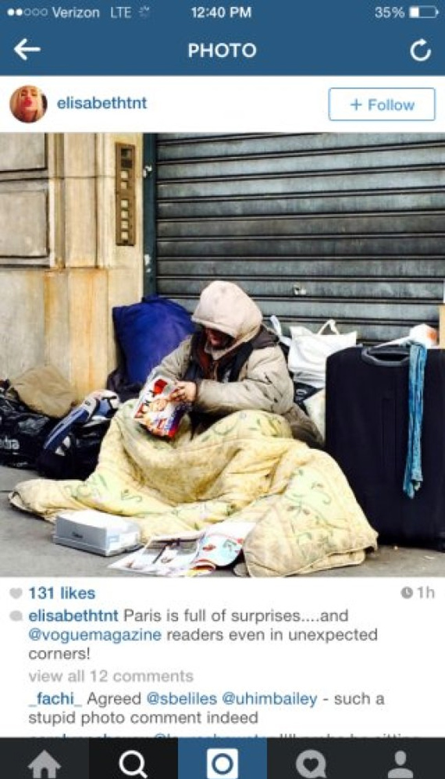 Σωρεία επικριτικών σχολίων δέχτηκε μια συντάκτρια της Vogue, όταν αποφάσισε να ανεβάσει μια φωτογραφία μιας άστεγης να διαβάζει το περιοδικό.