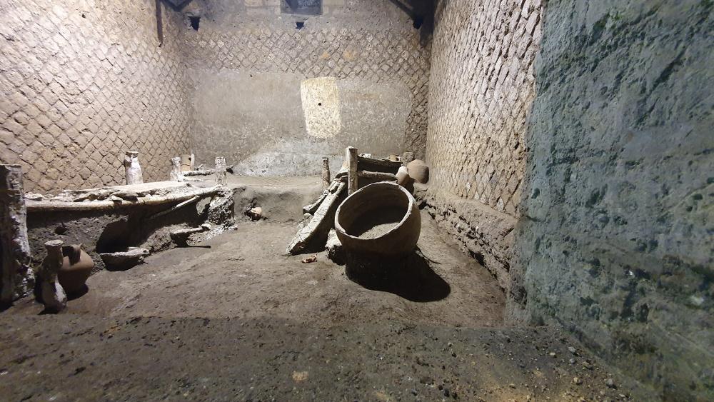 Το δωμάτιο, το οποίο έχει συντηρηθεί σε εξαιρετική κατάσταση, περιλαμβάνει τρία ξύλινα κρεβάτια και μια σειρά άλλων αντικειμένων, μεταξύ άλλων αμφορείς, κεραμικές κανάτες και ένα δοχείο νυχτός.