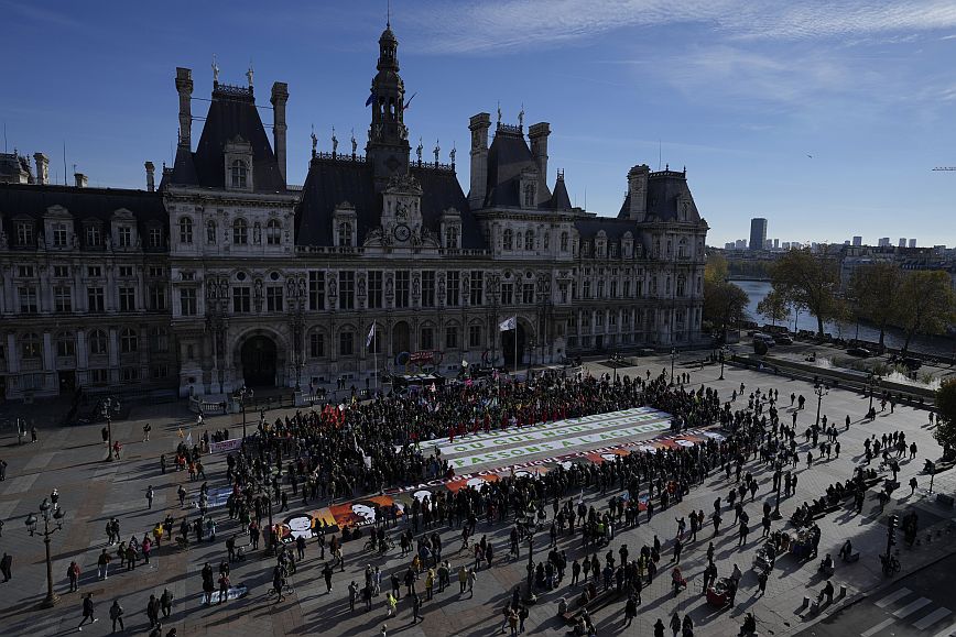 Στο Παρίσι εκατοντάδες άνθρωποι πραγματοποίησαν πορεία, κρεμώντας μπροστά από το δημαρχείο της γαλλικής πρωτεύουσας ένα πανό που έγραφε “Αδρανείς στην COP26, ετοιμοθάνατοι το 2050”.
