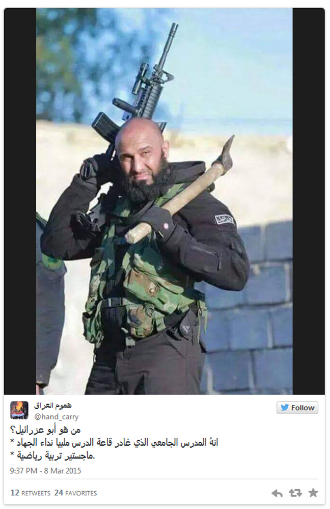 Τον περιβόητο Abu-Azrael, γνωστό και ως «άγγελο θανάτου». Ο Azrael είναι ο θρυλικός διοικητής από τις ταξιαρχίες αλ-Ιμάμ Αλί, μια ιρανική ομάδα που πολεμά στο Ιράκ.