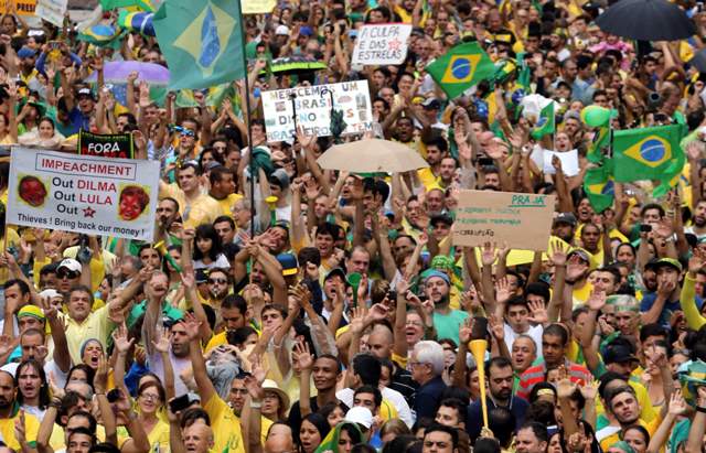 Στις διαδηλώσεις σε όλη τη χώρα ενάντια στη Ντίλμα Ρουσέφ, η οποία επανεξελέγη στα τέλη του 2014, συμμετείχαν περίπου 1,5 εκατ. πολίτες, σύμφωνα με τις εκτιμήσεις της αστυνομίας, ένας αριθμός συγκρίσιμος με τον όγκο των κινητοποιήσεων που είχαν καταγραφεί τον Ιούνιο του 2013.