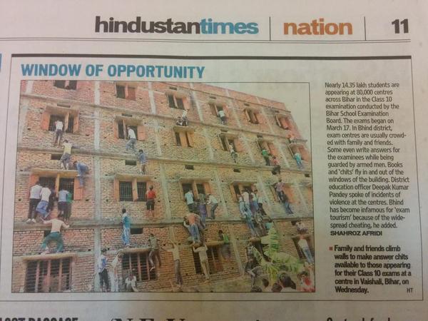 Γονείς μαθητών στην Ινδία ρισκάρουν τις ζωές τους για να βοηθήσουν τα παιδιά τους να αντιγράψουν! Συγκεκριμένα δεν διστάζουν να σκαρφαλώσουν πέντε ορόφους για να… μοιράσουν τα «σκονάκια» στα παιδιά τους που δίνουν εξετάσεις.