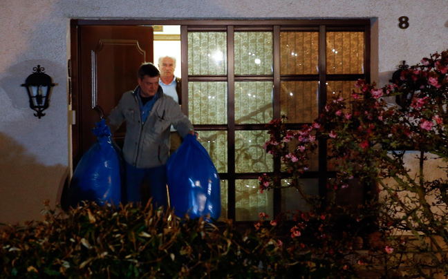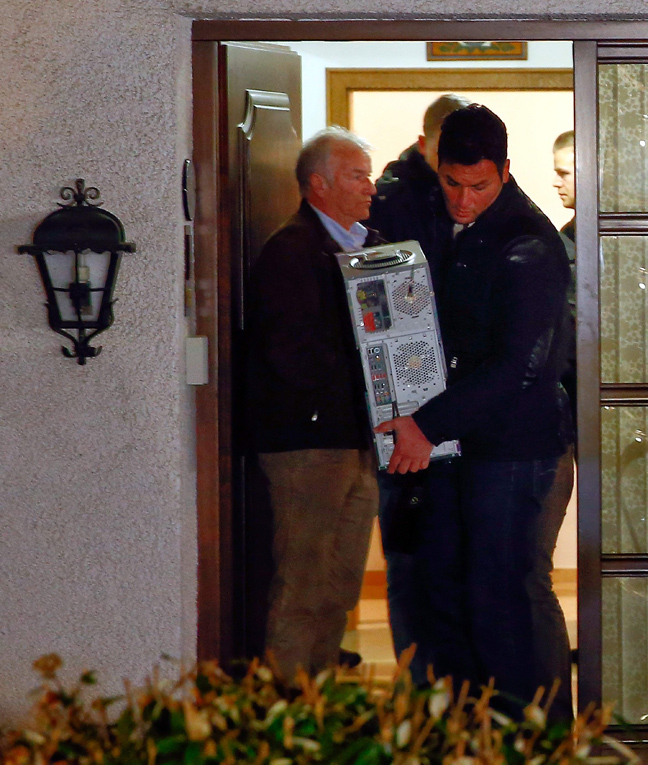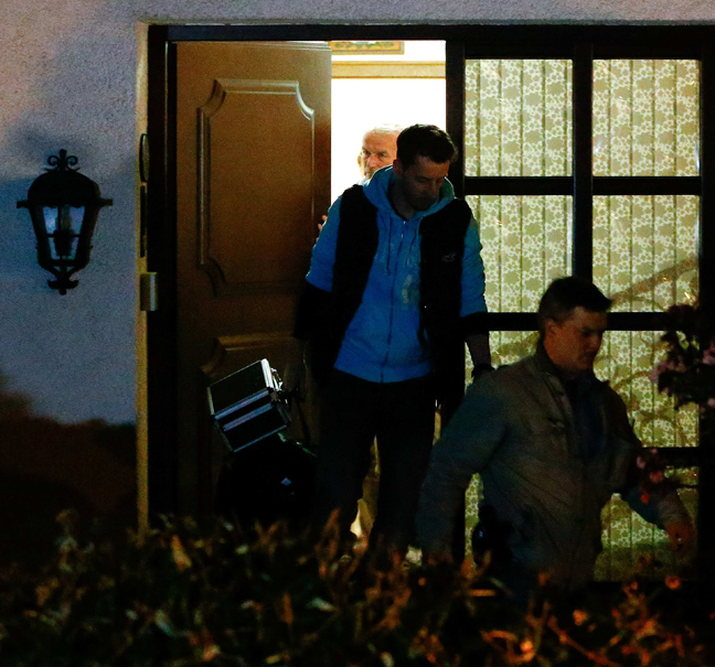 Οι αστυνομικοί βγαίναν από το σπίτι του κρατώντας τον υπολογιστή του, κούτες και σακούλες με έγγραφα.
