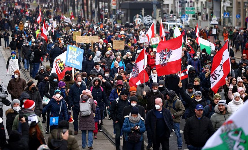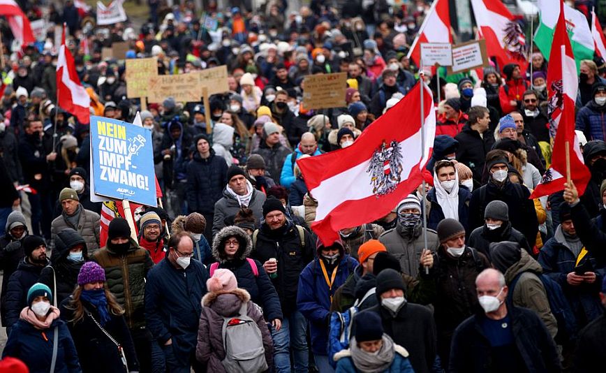 Η εχθρότητα προς την μερική καραντίνα και τον υποχρεωτικό εμβολιασμό ενθαρρύνεται από το ακροδεξιό κόμμα FPÖ, το οποίο κατηγορεί την κυβέρνηση συνασπισμού Συντηρητικών/Πράσινων για “δικτατορία”.