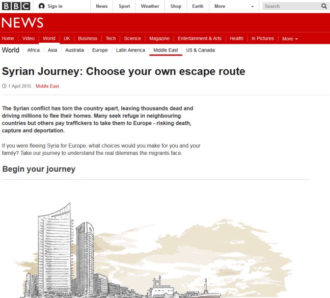Έντονες αντιδράσεις έχει προκαλέσει η πρωτοβουλία του BBC να μετατρέψει σε παιχνίδι τις μεγάλες δοκιμασίες που βιώνουν οι σύροι πρόσφυγες στην προσπάθειά τους να εγκαταλείψουν την εμπόλεμη χώρα τους.
