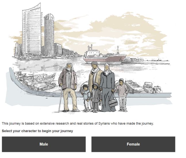 Οι παίκτες καλούνται να επιλέξουν έναν χαρακτήρα, αρσενικό ή θηλυκό, και να εγκαταλείψουν τη Συρία μέσω Τουρκίας ή Αιγύπτου, χρησιμοποιώντας δρόμους από τη ξηρά ή τη θάλασσα.