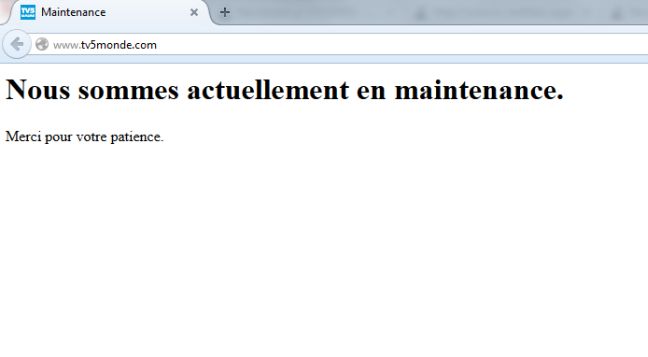 «Δεν είμαστε πλέον σε θέση να μεταδώσουμε κάποιο από τα κανάλια μας. Οι ιστότοποί μας και τα κοινωνικά μας δίκτυα δεν είναι υπό τον έλεγχό μας και εμφανίζουν όλα τα αιτήματα του Ισλαμικού Κράτους», είπε ο επικεφαλής του τηλεοπτικού δικτύου TV5 Monde. Μέχρι στιγμής ο ιστότοπος εκπέμπει το μήνυμα πως δεν είναι διαθέσιμος ενώ το προφίλ των κοινωνικών δικτύων φέρει την παρακάτω φωτογραφία.