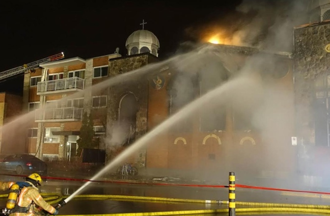 Για άγνωστους λόγους τυλίχτηκε στις φλόγες η εκκλησία της Παναγίτσας στην περιοχή Παρκ Εξτένσιον του Μόντρεαλ.