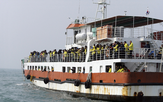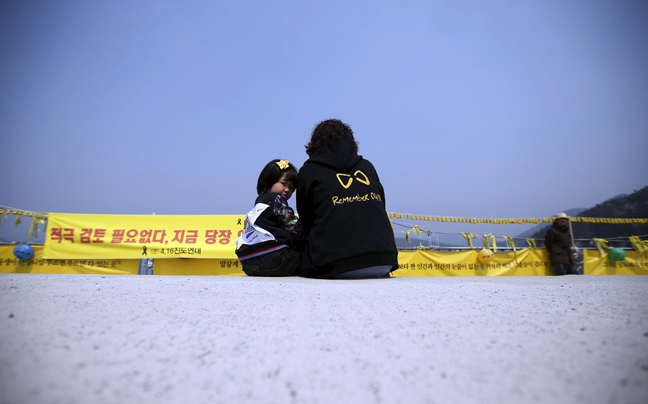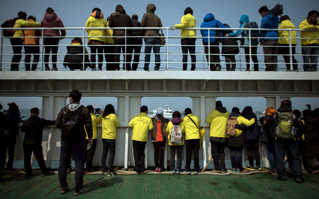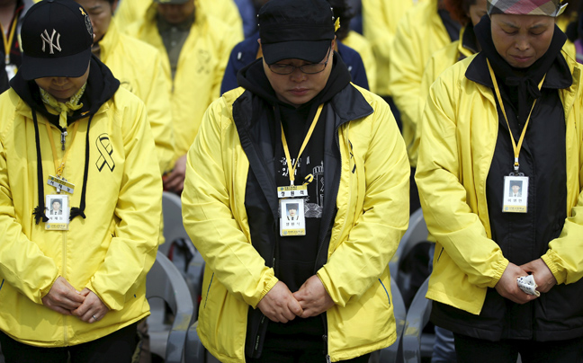 Στον τόπο που βυθίστηκε το νοτιοκορεατικό οχηματαγωγό Sewol, πριν από ένα χρόνο, συγκεντρώθηκαν σήμερα οι συγγενείς των 304 νεκρών επιβατών -στην πλειοψηφία τους παιδιά- εκ των οποίων τα 9 ακόμα αγνοούνται.