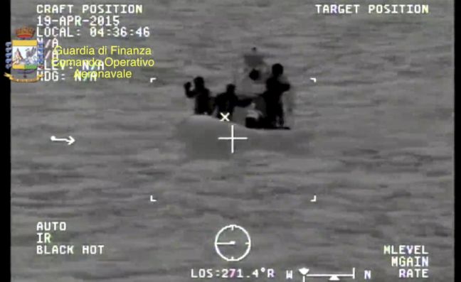 Τη νύχτα του Σαββάτου προς Κυριακή, το αλιευτικό εξέπεμψε σήμα κινδύνου, το οποίο έλαβε η ιταλική ακτοφυλακή που ζήτησε ταυτόχρονα από πορτογαλικό φορτηγό πλοίο να αλλάξει πορεία και να κατευθυνθεί στο σημείο όπου ήταν το αλιευτικό. Φθάνοντας εκεί, περίπου 220 χλμ. νότια του ιταλικού νησιού Λαμπεντούζα, το πλήρωμα του φορτηγού είδε το αλιευτικό να βυθίζεται. Αυτό πιθανόν συνέβη όταν εκατοντάδες πρόσφυγες έσπευσαν την ίδια πλευρά του αλιευτικού βλέποντας το φορτηγό που πλησίαζε, δήλωσε η ιταλική ακτοφυλακή.