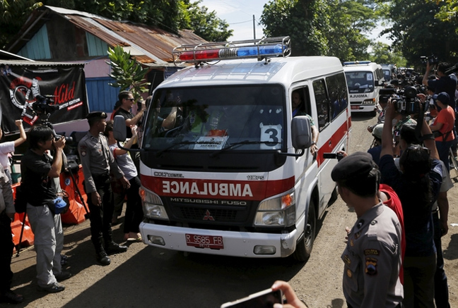 Δεκάδες ασθενοφόρα, ορισμένα μεταφέροντας φέρετρα, έφτασαν στη φυλακή στην κεντρική Ιάβα όπου οι εννέα αναμένεται να εκτελεστούν απόψε το βράδυ.