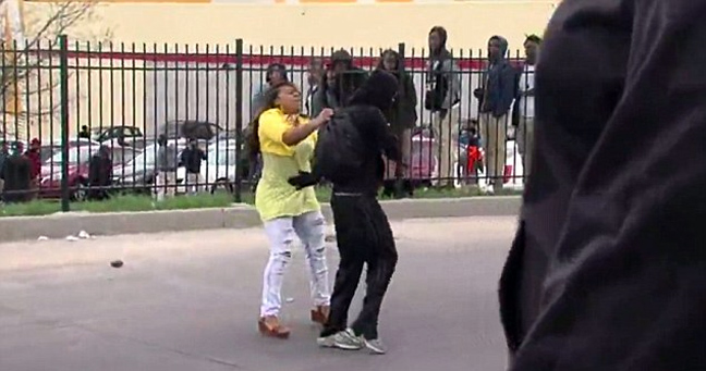 Όπως μεταδίδουν τα διεθνή μέσα ενημέρωσης, την ώρα που η Βαλτιμόρη φλέγεται με τις ταραχές και την αναρχία να κυριαρχούν μετά την κηδεία του Φρέντι Γκρέι, , η εικονιζόμενη μητέρα αναγνώρισε τον γιο της μεταξύ των νεαρών που συγκρούονταν με την αστυνομία και έσπευσε στο σημείο των ταραχών για να του δώσει ένα μάθημα.