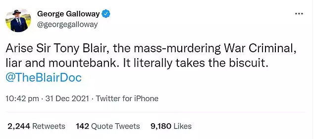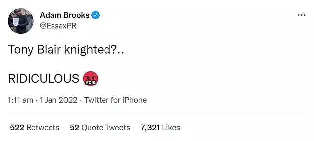 Ο ίδιος ο Σερ Τόνι Μπλερ, πρώην ηγέτης των Εργατικών, δήλωσε: «Είναι τεράστια τιμή να διορίζομαι Σύντροφος Ιππότης του Ευγενέστερου Τάγματος της Περικνημίδας και είμαι βαθιά ευγνώμων στην Αυτού Μεγαλειότητα της Βασίλισσα.