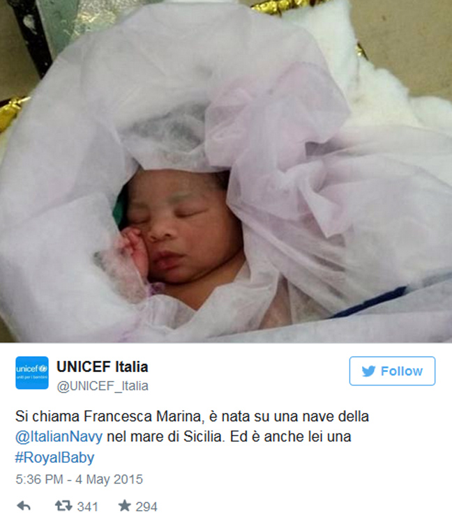 Την ώρα που η βασιλική οικογένεια και ολόκληρος ο κόσμος καλωσόριζε τη μικρή πριγκίπισσα, εκατοντάδες χιλιόμετρα μακριά μια άλλη γυναίκα άρχιζε να νιώθει τις ωδίνες του τοκετού ενώ βρισκόταν στο μέσο της Μεσογείου. Ήταν μία από τους 6.800 ανθρώπους που διασώθηκαν κατά τη διάρκεια του επικίνδυνου ταξιδιού τους από την Αφρική προς τη «Γη της Επαγγελίας», την Ευρώπη.