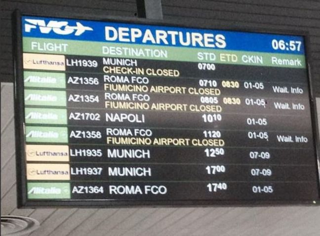 Κλειστό θα μείνει μέχρι τις 3 το μεσημέρι το αεροδρόμιο του Φιουμιτσίνο στη Ρώμη εξαιτίας πυρκαγιάς σε υπόγειο χώρο αποσκευών του τερματικού σταθμού 3.