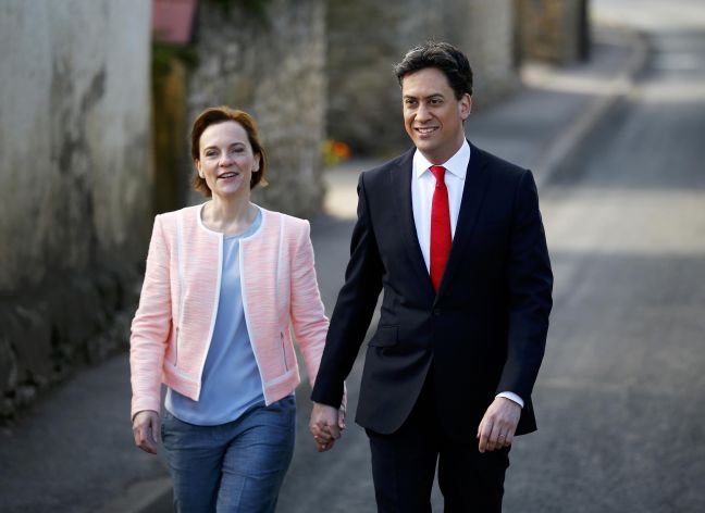 Σχεδόν 200 χλμ. βορειότερα, ο Εργατικός αντίπαλός του Έντ Μίλιμπαντ φόρεσε την πιο ωραία κόκκινη γραβάτα του για να ψηφίσει στην περιφέρειά του στο Ντονκάστερ, συνοδευόμενος από τη σύζυγό του Τζάστιν.