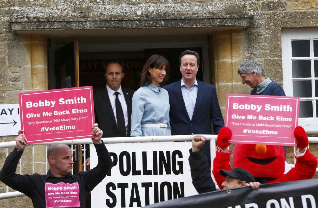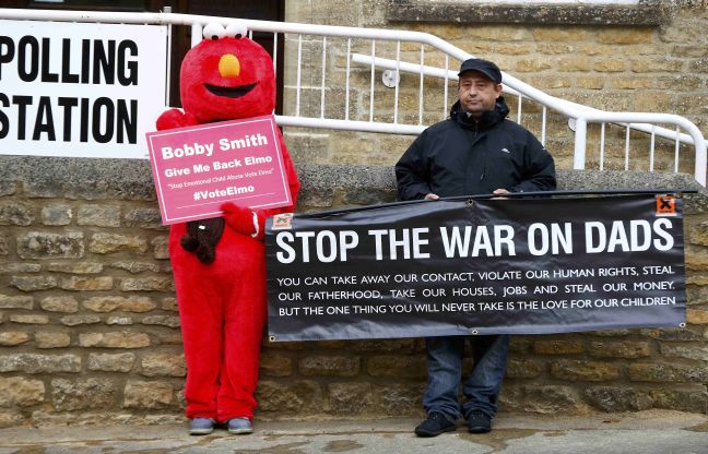 Στο Σπέλσμπουρι, ένα μικρό χωριό στο Όξφορντσαϊρ, τον Ντέιβιντ Κάμερον υποδέχθηκαν μόλις βγήκε από το πρωθυπουργικό του αυτοκίνητο τρεις διαδηλωτές, ένας από τους οποίους ήταν ντυμένος με κόκκινη γούνινη στολή του Μάπετ Σόου. Οι τρεις διαδήλωναν για τα δικαιώματα των πατέρων που έχουν στερηθεί τα παιδιά τους.