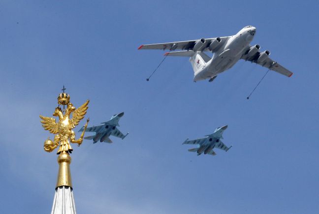 Στην παρέλαση συμμετείχαν περισσότεροι από 16.000 άνδρες και γυναίκες των ρωσικών ενόπλων δυνάμεων, 200 οχήματα και τεθωρακισμένα, ανάμεσα στα οποία και το νέο ρωσικό τανκ «Αρμάτα». Επίσης συμμετείχαν για πρώτη φορά οι πύραυλοι «Γιαρς», ικανοί να διαπερνούν αντιπυραυλικές ασπίδες και 150 αεροπλάνα, τα οποία πραγματοποίησαν σχηματισμούς πάνω από την Κόκκινη Πλατεία. Στην παρέλαση συμμετείχαν και στρατιωτικά τμήματα από δέκα χώρες, έξι πρώην σοβιετικές Δημοκρατίες, την Ινδία, τη Σερβία, τη Μογγολία και την Κίνα, συμμάχους στον αγώνα κατά του ναζισμού.