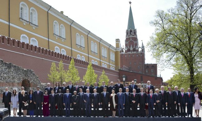 Ο Β. Πούτιν και οι προσκεκλημένοι ξένοι ηγέτες κατέθεσαν ομαδικά στεφάνι στο Μνημείο του Αγνώστου Στρατιώτη και τώρα παρευρίσκονται στη δεξίωση που παραθέτει ο Ρώσος ηγέτης στο Κρεμλίνο. Ο Ρώσος ηγέτης υποδέχθηκε έναν έναν τους ξένους ηγέτες, ανάμεσα στους οποίους ο Γ.Γ. του ΟΗΕ Παν Γκι Μουν, οι ηγέτες της Τσεχίας Μίλος Ζέμαν, της Βενεζουέλας Νίκολας Μαδούρο, της Κούβας Ραούλ Κάστρο, Αζερμπαϊτζάν Ιλχάν Αλίεφ, Αρμενίας Σερζ Σαργκισιάν κλπ.