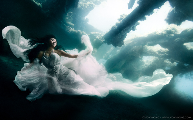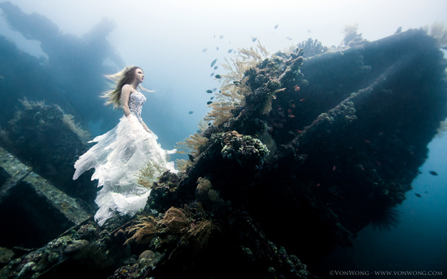 Ο φωτογράφος είναι γνωστός για τις δύσκολες φωτογραφίσεις του και είναι χαρακτηριστικό πως ενώ θα ήταν μάλλον πιο πρακτικό να γίνει η σύνθεση των παρακάτω φωτογραφιών ψηφιακά, ο Von Wong επέλεξε ένα διαφορετικό μονοπάτι και βρήκε μοντέλα με εμπειρία στην ελεύθερη κατάδυση για να υλοποιήσει το αιθέριο πλάνο του.