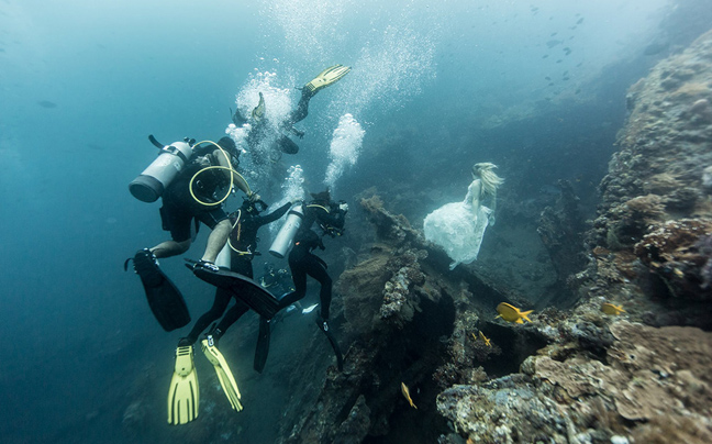 Στη φωτογράφιση συμμετείχαν επίσης επτά επιπλέον δύτες, ως ομάδα υποστήριξης, ενώ χρειάστηκε ειδική άδεια για να στηθεί η φωτογράφιση με σκηνικό ένα ναυάγιο 50 ετών.