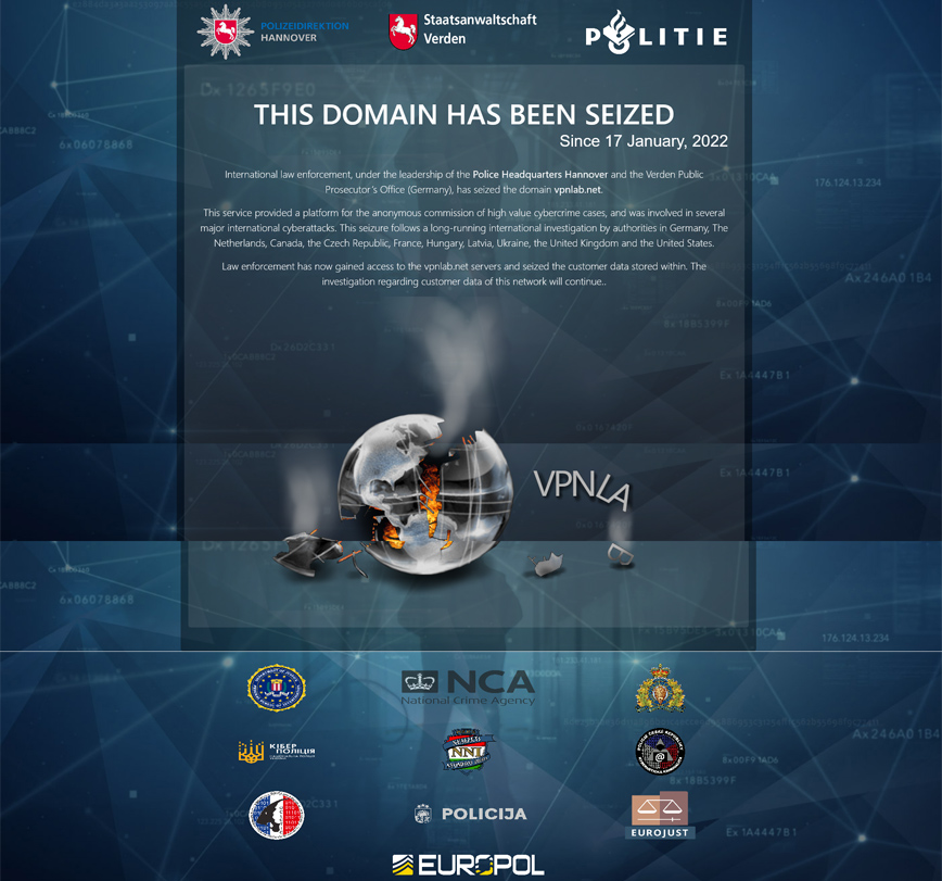 Ερευνητές στην Ευρώπη και τη Βόρεια Αμερική τη Δευτέρα (17/1) κατάσχεσαν ή διέκοψαν τη λειτουργία τουλάχιστον 15 διακομιστών που φιλοξενούσαν ιστοτόπους καθώς και τον ιστότοπο VPNLab.net, ο οποίος παρείχε στις εγκληματικές οργανώσεις προστατευμένες επικοινωνίες και πρόσβαση στο διαδίκτυο, ανέφερε η Ευρωπαϊκή Αστυνομική Υπηρεσία.