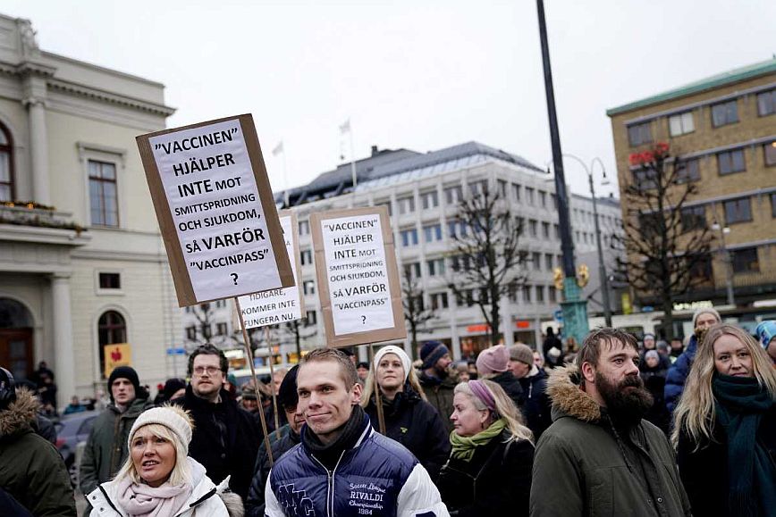 Περί τους 9.000 άνθρωποι, σύμφωνα με τα σουηδικά μέσα ενημέρωσης, διαδήλωσαν στους δρόμους της Στοκχόλμης φωνάζοντας «Οχι στο εμβολιαστικό πάσο, Ναι στην ελευθερία», έπειτα από πρόσκληση οργάνωση που ονομάζεται «το Κίνημα για τη Ελευθερία».