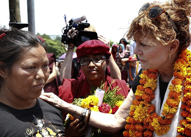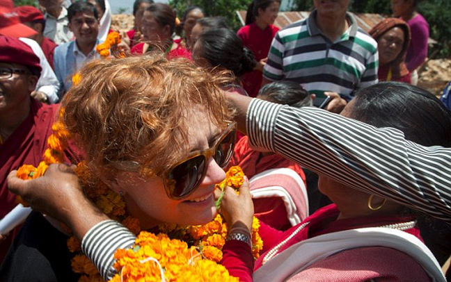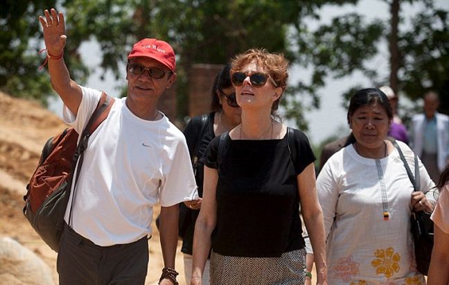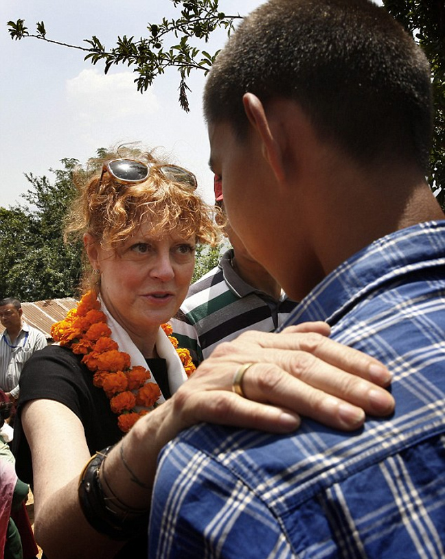 Την ισοπεδωμένη χώρα επισκέφθηκε χθες η διάσημη ηθοποιός Σούζαν Σάραντον για να μιλήσει με τους ανθρώπους που βιώνουν την απώλεια των δικών τους και να ενθαρρύνει άλλους να συνεχίσουν να παλεύουν.