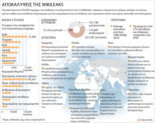 Περισσότερα από 250 χιλιάδες απόρρητα έγγραφα της διπλωματικής υπηρεσίας των Ηνωμένων Πολιτειών, δημοσιοποίησε ο ιστότοπος Wikileaks, προκαλώντας παγκόσμιο σάλο.