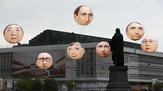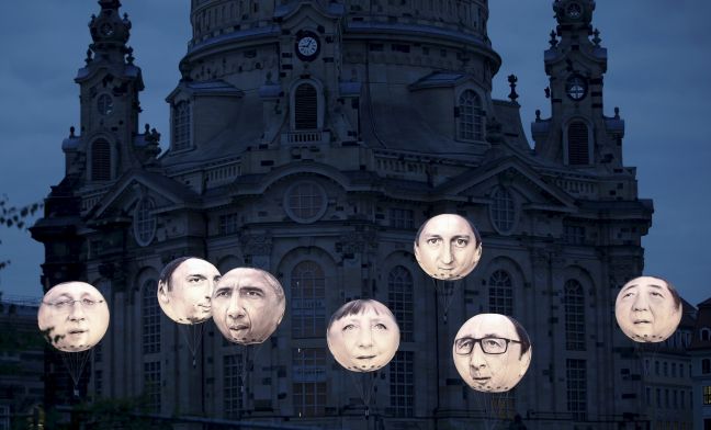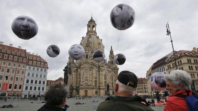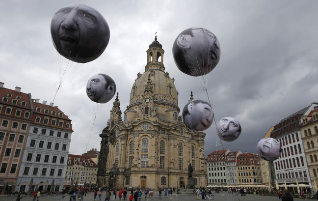 Ο κόσμος παρακολουθούσε για αρκετή ώρα τους «ηγέτες» να κυματίζουν στον ουρανό, μπροστά από τον καθεδρικό ναό Frauenkirche στη Δρέσδη. Τα μπαλόνια απεικόνιζαν τον ιάπωνα πρωθυπουργό, Σίνζο Άμπε, τον βρετανό πρωθυπουργό Νέιβιντ Κάμερον, τον γάλλο πρόεδρο Φρανσουά Ολάντ, την γερμανίδα καγκελάριο, Άνγκελα Μέρκελ, τον πρόεδρο των ΗΠΑ, Μπαράκ Ομπάμα,τον ιταλό πρωθυπουργό, Ματέο Ρένζι καθώς και τον καναδό πρωθυπουργό, Στίβεν Χάρπερ.