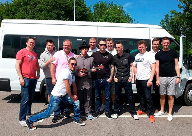 Μετά την «απελευθέρωση» του 41χρονου η παρέα των φίλων ταξίδεψε στο Λίβερπουλ όπου ανάγκασε τον γαμπρό να ντυθεί Τζον Λένον κατά τη βραδινή τους έξοδο στην πόλη.