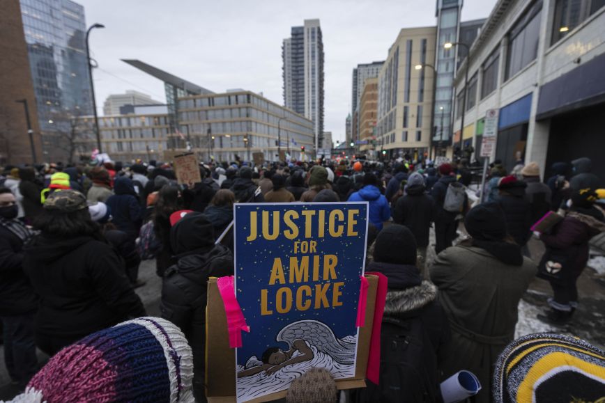 Εκατοντάδες άνθρωποι διαδήλωσαν σε δρόμους στο κέντρο της Μινεάπολης, απαιτώντας δικαιοσύνη μετά τον θανάσιμο τραυματισμό από σφαίρες αστυνομικού του νεαρού μαύρου Αμίρ Λοκ κατά τη διάρκεια εφόδου ομάδας των ειδικών δυνάμεων στο διαμέρισμά του αυτή την εβδομάδα.