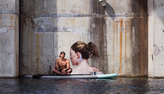 Το στούντιο του Sean Yoro επιπλέει- είναι μια σανίδα του σερφ. Ο καλλιτέχνης ισορροπεί πάνω της καθώς δημιουργεί τα εντυπωσιακά έργα του εκεί που η επιφάνεια του νερού συναντά τους τοίχους της Νέας Υόρκης. Το αποτέλεσμα είναι οι γυναίκες που «γεννούν» η φαντασία και τα χέρια του να μοιάζουν να αναδύονται από το νερό, να παίρνουν το μπάνιο τους ή να ισορροπούν κι εκείνες στην επιφάνεια.