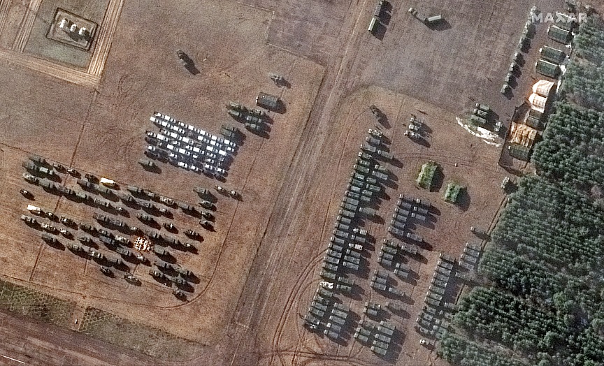 Η Ρωσία μπορεί να λέει πως παραμένει ανοιχτή σε διάλογο με τη Δύση ώστε να βρεθεί λύση στην ουκρανική κρίση, αλλά δορυφορικές εικόνες καταγράφουν νέα ανάπτυξη 100 και πλέον στρατιωτικών οχημάτων και το στήσιμο δεκάδων σκηνών για στρατιώτες στη νότια Λευκορωσία, κοντά στα σύνορα με την Ουκρανία, ανακοίνωσε η αμερικανική ιδιωτική εταιρεία Maxar.