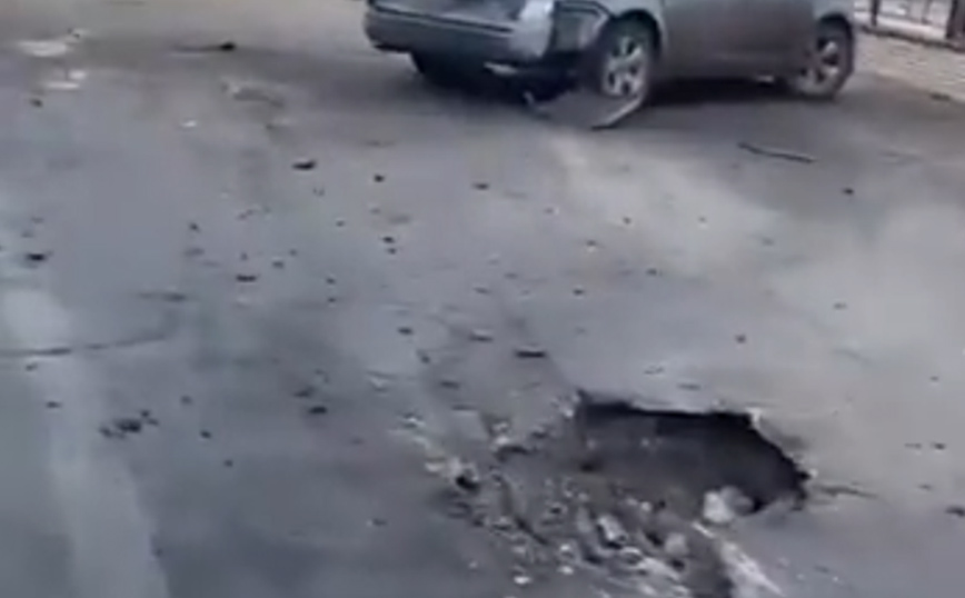 Οι πύραυλοι έχουν ανοίξει ολόκληρες τρύπες στον δρόμο, ενώ άμαχοι κείτονται στην άσφαλτο μέσα στα αίματα.
