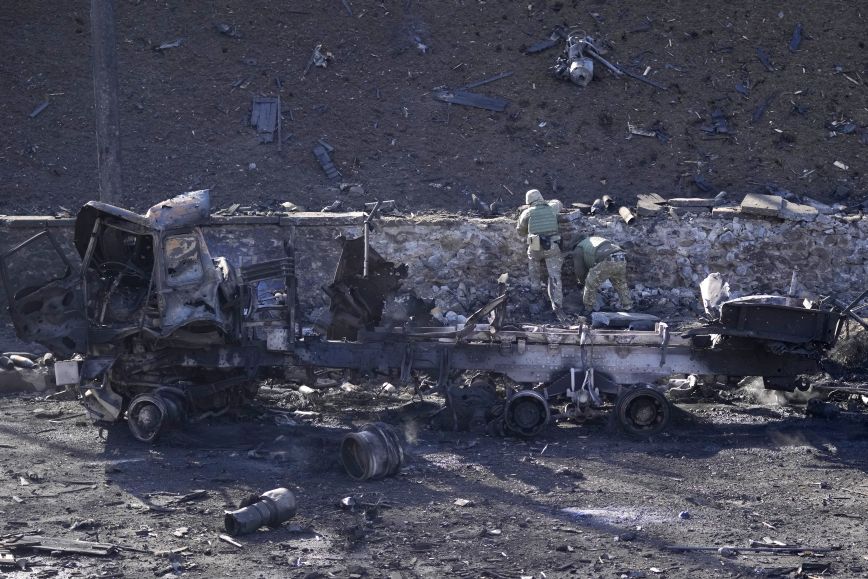 Η Ρωσία εισέβαλε στην Ουκρανία την Πέμπτη, μετά την αναγνώριση τη Δευτέρα από τον ρώσο πρόεδρο Βλαντίμιρ Πούτιν της ανεξαρτησίας των αυτοανακηρυγμένων Λαϊκών Δημοκρατιών του Ντονμπάς, της ανατολικής Ουκρανίας. Οι ρωσικές δυνάμεις προελαύνουν μεταξύ άλλων από την Κριμαία, ουκρανική χερσόνησο που προσάρτησε η Ρωσία το 2014.