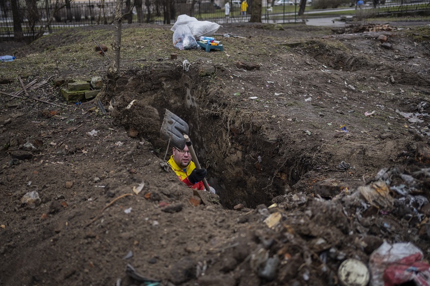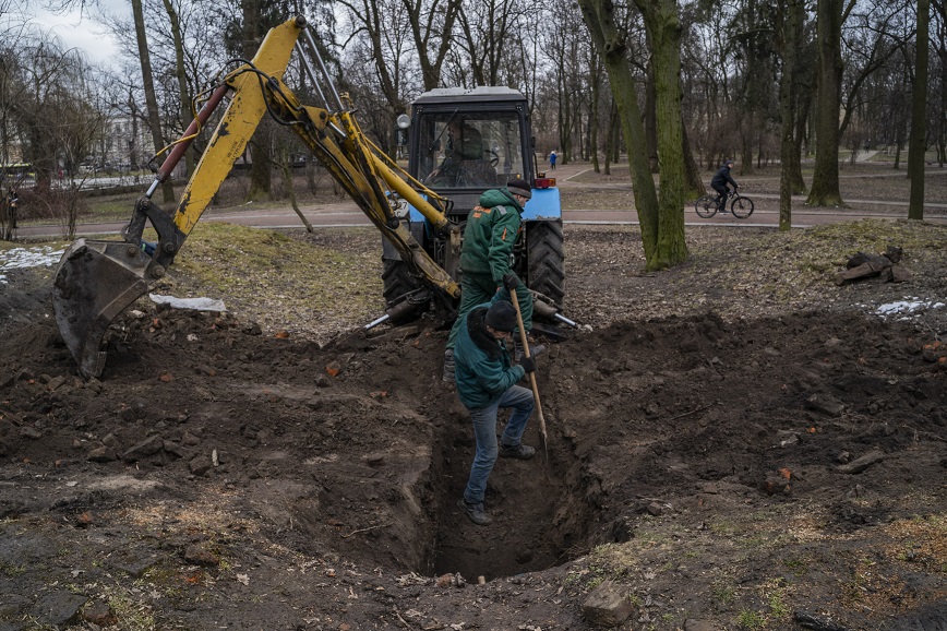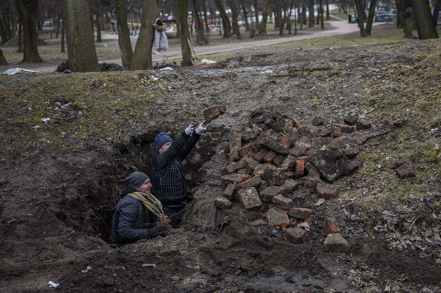 Φωτογραφίες και βίντεο που μεταδίδουν τα διεθνή πρακτορεία και ΜΜΕ του εξωτερικού, δείχνουν τους Ουκρανούς πολίτες με φτυάρια και μπουλντόζες να σκάβουν χαρακώματα, ενώ με τα μπάζα από τα κτίρια που κατέρρευσαν λόγω των βομβαρδισμών, στήνουν οχυρωματικά έργα.
