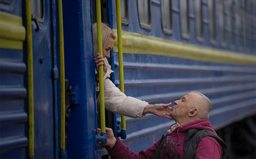 Ουκρανία: Ένα φιλί, μια αγκαλιά υπό τον ήχο των οβίδων