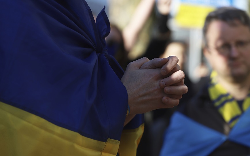 Ακολουθούν φωτογραφίες του Associated Press από τις αντιπολεμικές διαδηλώσεις που έγιναν στην Ευρώπη: