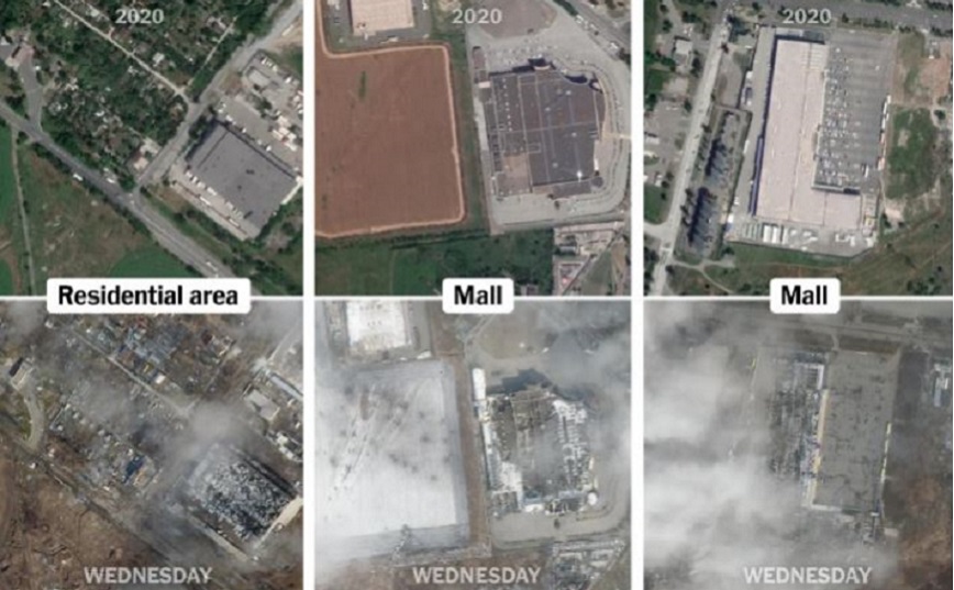 Χαρακτηριστικά, οι nytimes.com παραθέτουν εικόνες από κεντρικά σημεία της πόλης, με τα κτίρια να έχουν ισοπεδωθεί και το σκηνικό να μην θυμίζει σε τίποτα την ζωή πριν τον πόλεμο. Μάλιστα, αντίστοιχες δορυφορικές εικόνες δημοσίευσε και η Maxar Technologies, εταιρία που συνεργάζεται με την NASA και τις ΗΠΑ, στην ανάπτυξη στρατιωτικών τεχνολογιών.